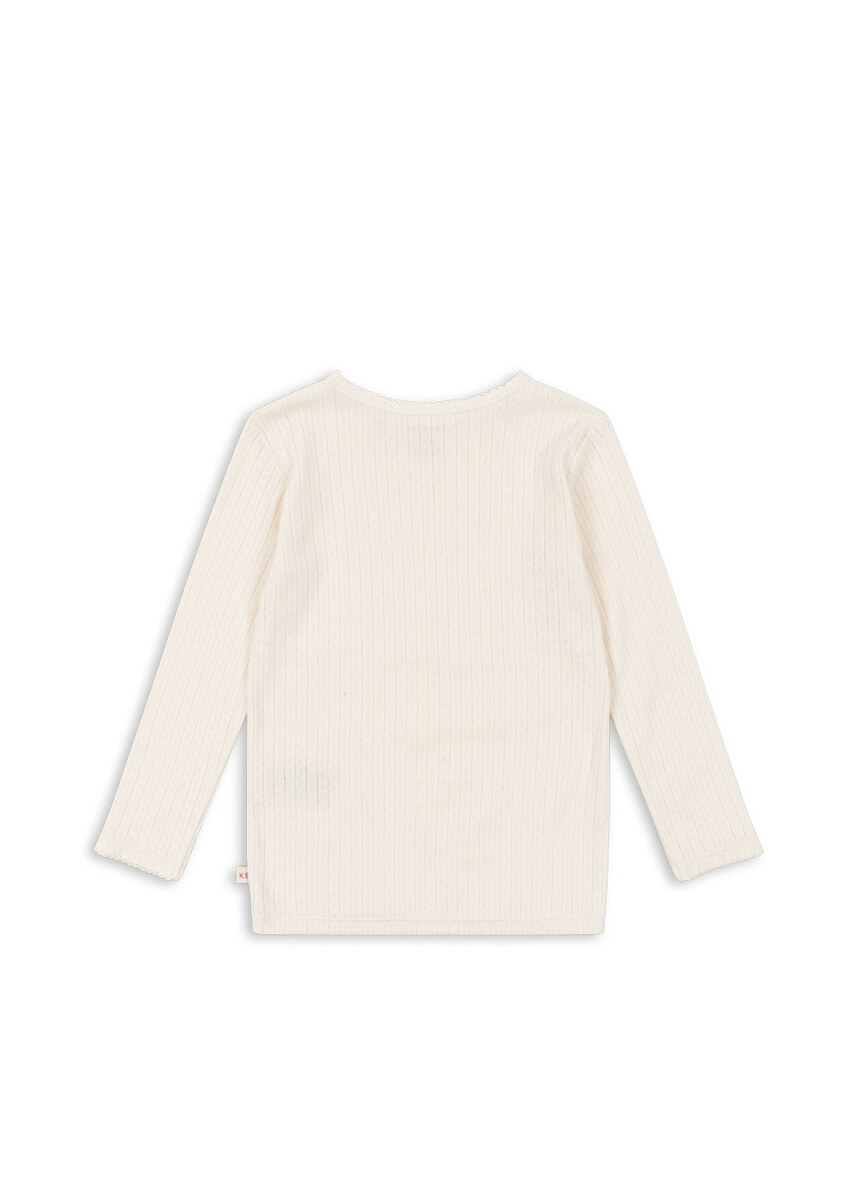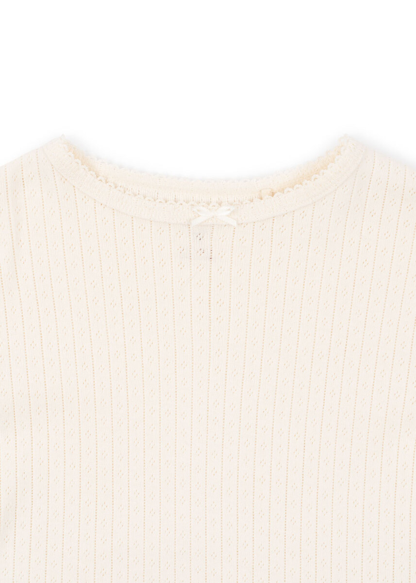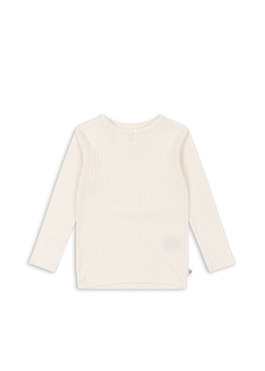 Denne bluse i 100% økologisk GOTS-certificeret bomuld tilbyder blød komfort og dekorativ pointelle. Perfekt som base layer eller i din daglige garderobe – et bæredygtigt og stilfuldt must-have.
