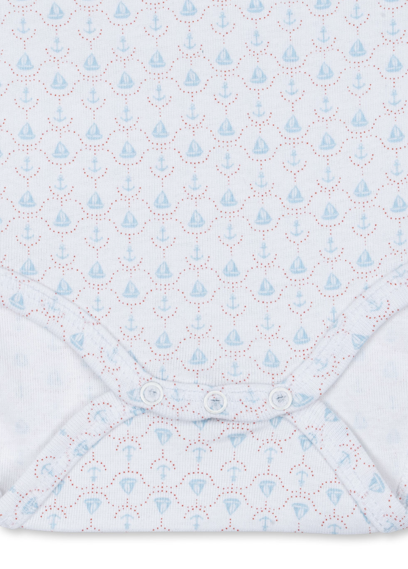 Blød bodysuit i økologisk bomuld med lange ærmer. Lavet i en fleksibel ribkant med en praktisk kuvertudskæring, der gør den nem at tage af og på, samt nemme trykknapper mellem benene til bleskift. Lavet af 100% økologisk bomuld. Dette produkt indeholder 100% OCS-certificeret bomuld, certificeret af CU1094701.