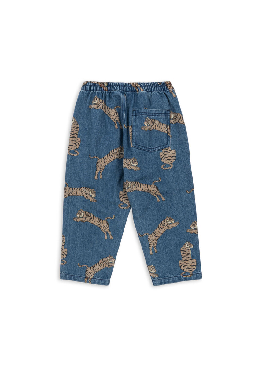 Bløde denimbukser i 100% GOTS-certificeret økologisk bomuld med straight fit og elastisk talje for optimal komfort. Holdbart og behageligt materiale, perfekt til hverdagsbrug. Vask separat – farven kan smitte af.