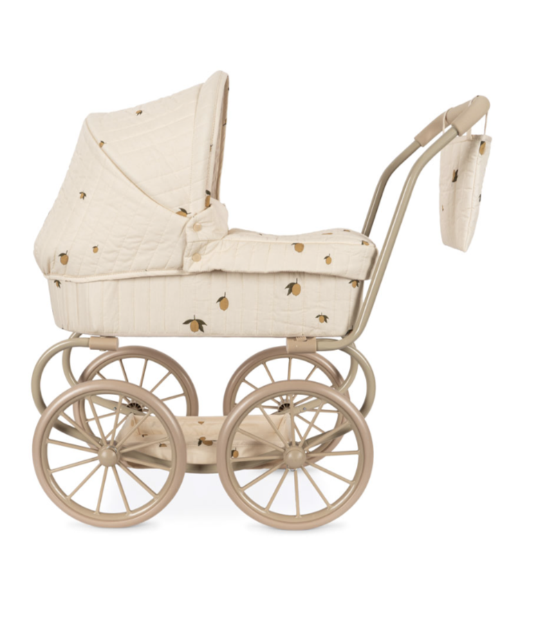 Vores dukkevogn i vintage-stil i en mindre version, der er nem for små dukkeforældre at manøvrere. Designet med fire store hjul, der gør den nem og stabil at gå med, quiltet stof og fine, bølgede kanter. Dukkevognen inkluderer en foldbar solskærm og en polstret opbevaringskurv under liften. Stellet er lavet af metal med bløde, svampede håndtag. Leveres fuldt samlet og er nem at folde sammen og opbevare. Mål: H: 72 cm x B: 31 cm x L: 55 cm Velegnet fra 3 år+ ADVARSEL! KVÆLNINGSFARE. Små dele. Ikke egnet til børn under 36 måneder. CE-mærket.