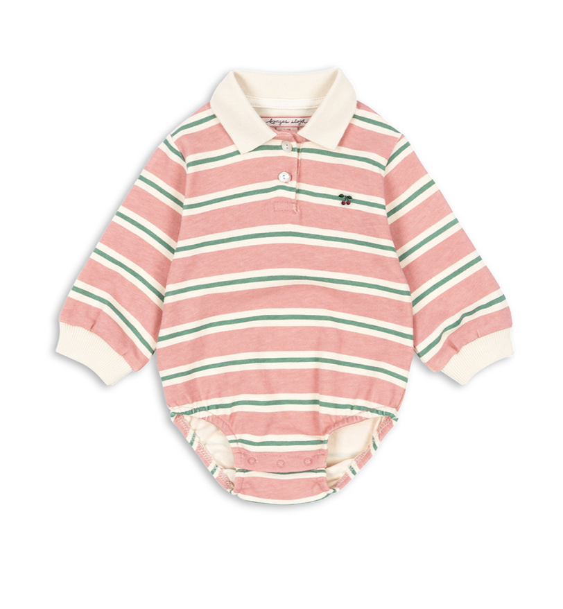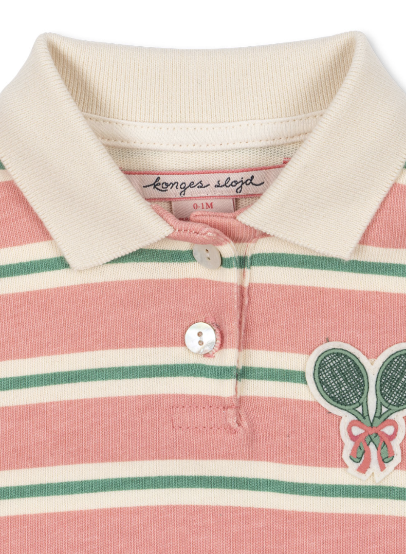 Blød bomuldshelter i klassisk poloshirtdesign. Har almindelig krave, knaplukning og trykknaplukning ved benåbningerne for nem påklædning. Lavet af 100% økologisk bomuld GOTS, økologisk, certificeret af CU1094701