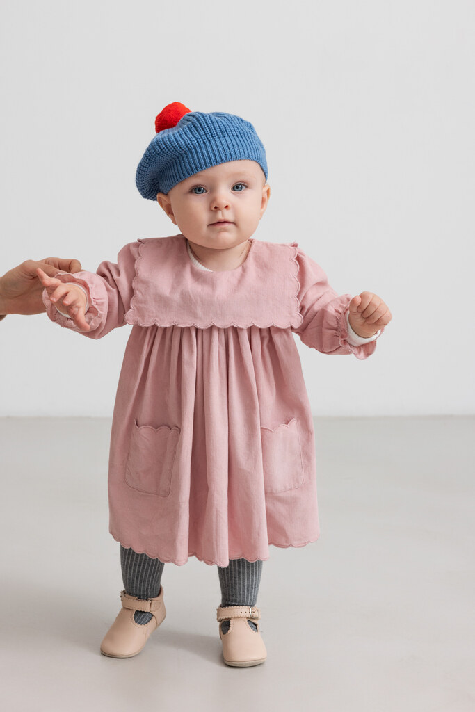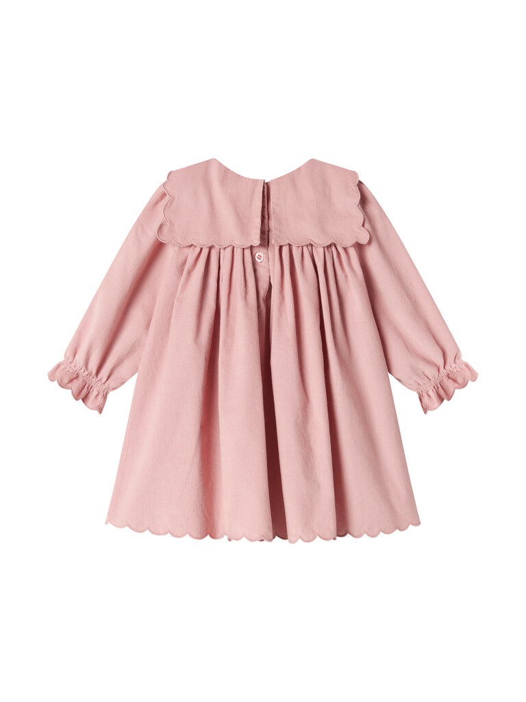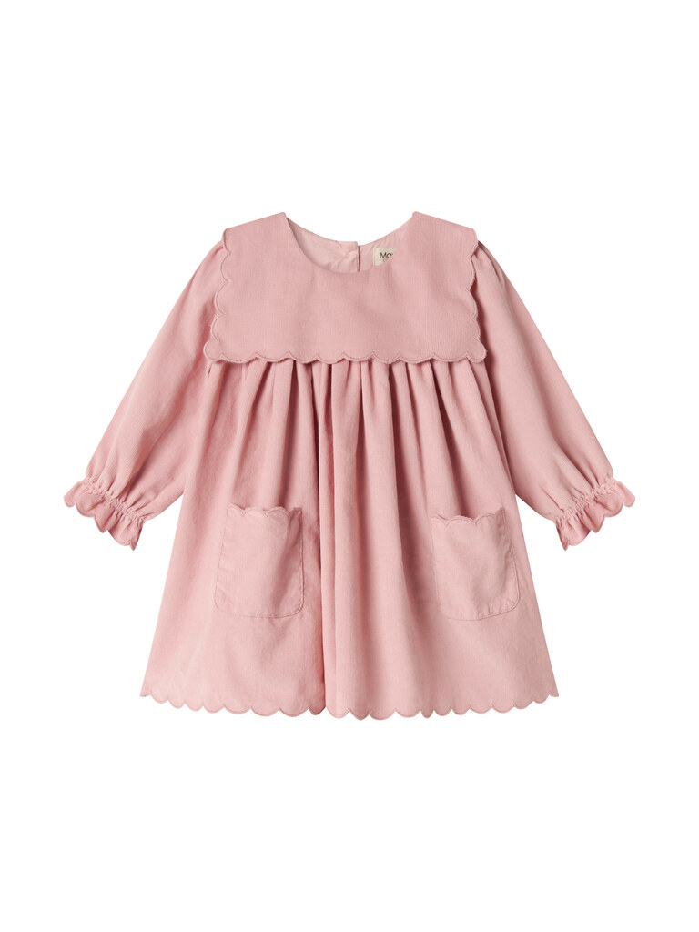 Langærmet kjole med fine detaljer rundt i kanterne, samt lommedesign på fronten.