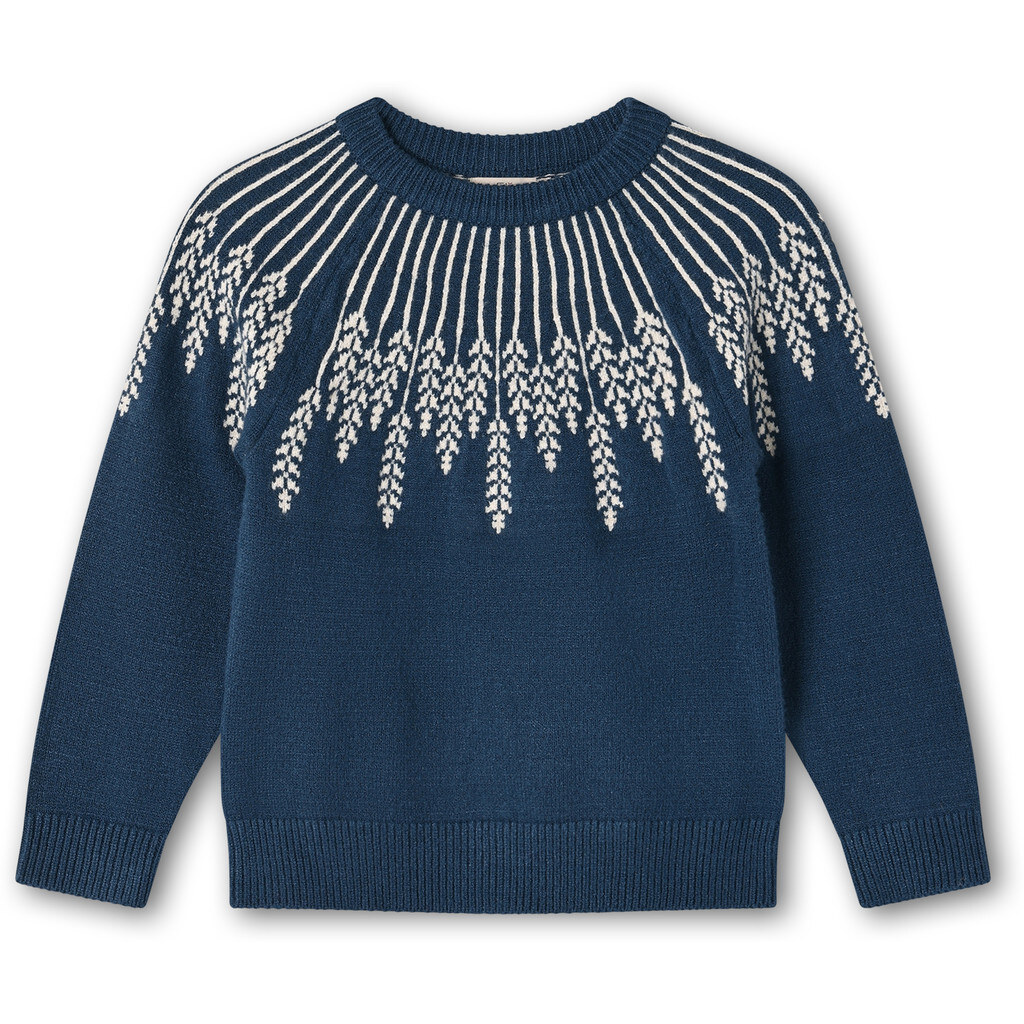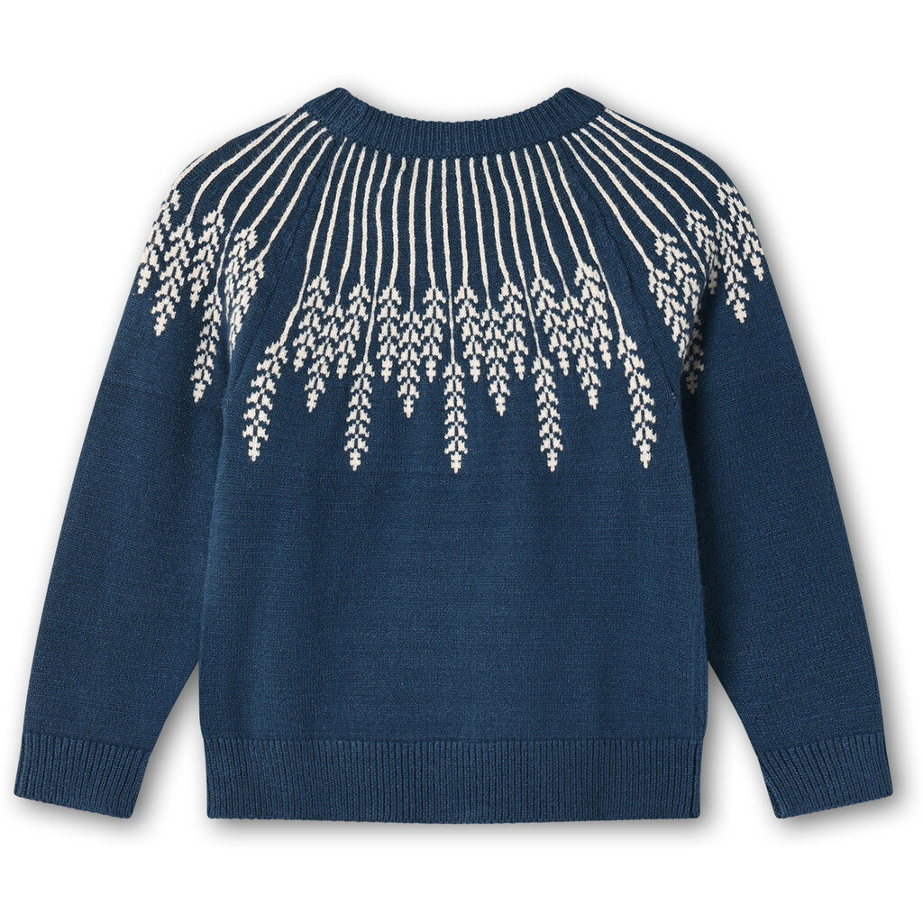 Strikket sweater med bladmønster rundt om halsudskæringen. Pulloveren har raglanærmer og en behagelig pasform.