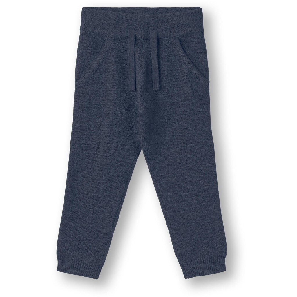 Bløde, løst strikkede bukser med bred elastisk talje. Bukserne har dekorative snore samt lommer og en ribkant ved anklerne.