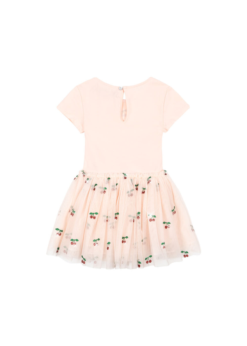 Den perfekte kjole til små ballerinaer, der giver dig lyst til at snurre rundt og hvirvle hele dagen lang. Designet med et voluminøst tylskørt, der er fastgjort til et tætsiddende jakkesæt i et strækbart bomuldsstof med dekorative pailletter.
