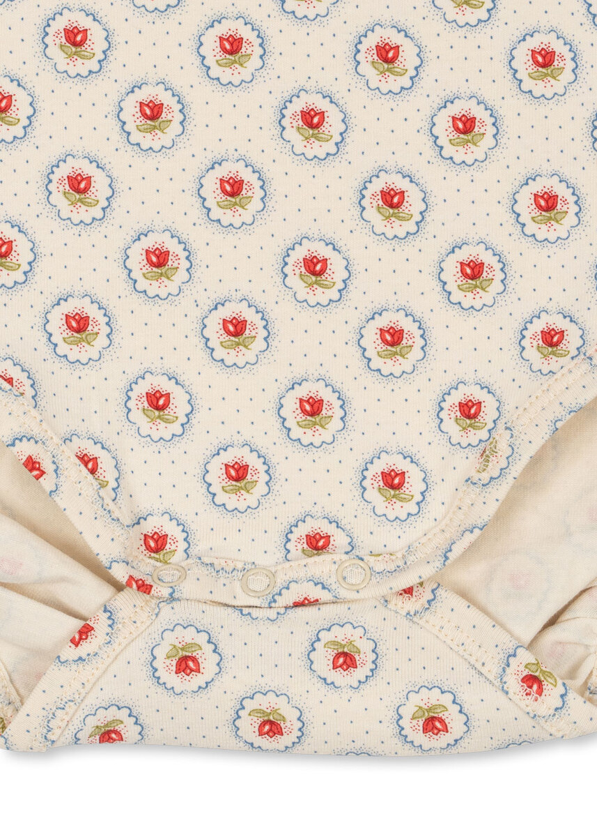 Blød langærmet body lavet af økologisk bomuld blandet med elastan for holdbarhed og et strejf af stretch. Designet med trykknapper i skridtet for nem påklædning. GOTS, Økologisk, certificeret af CU1094701
