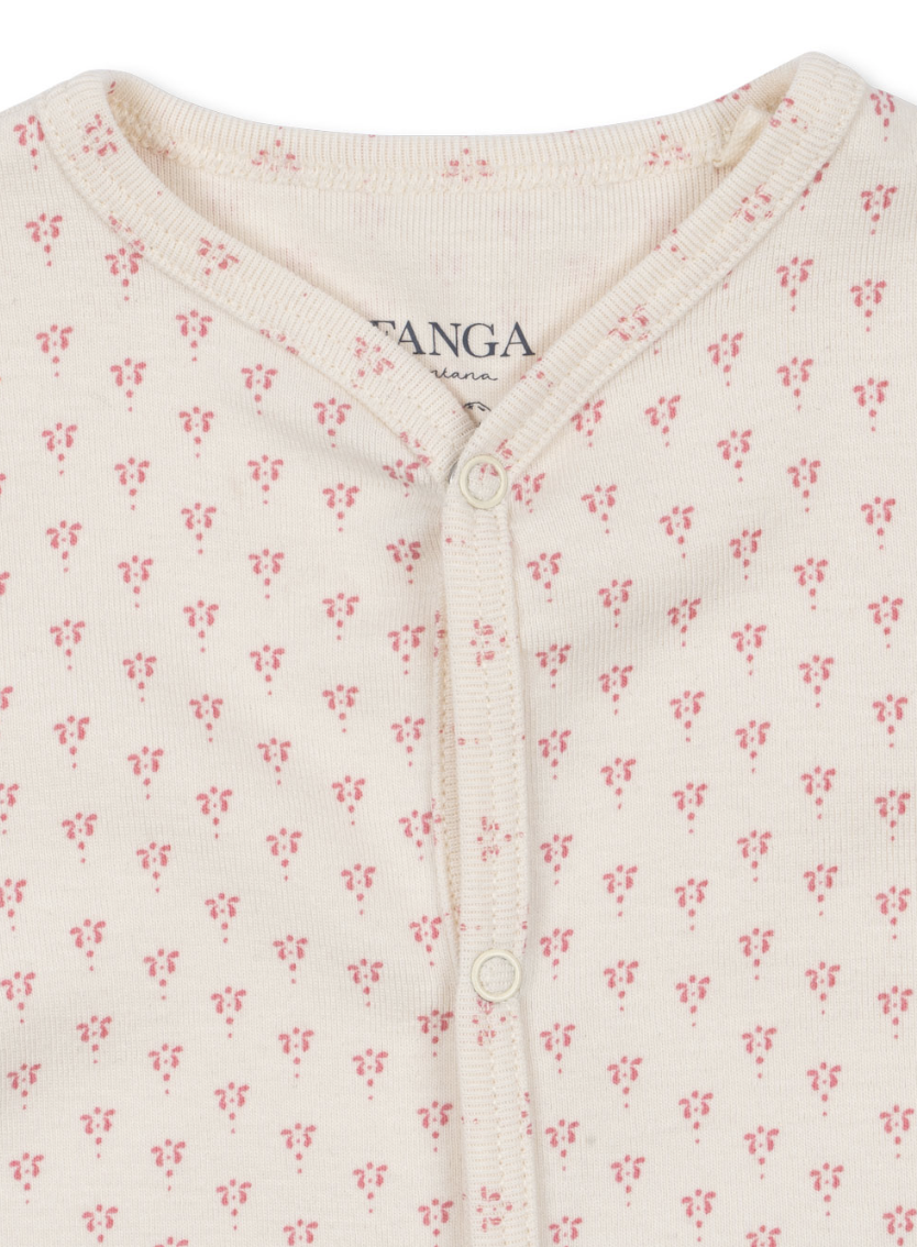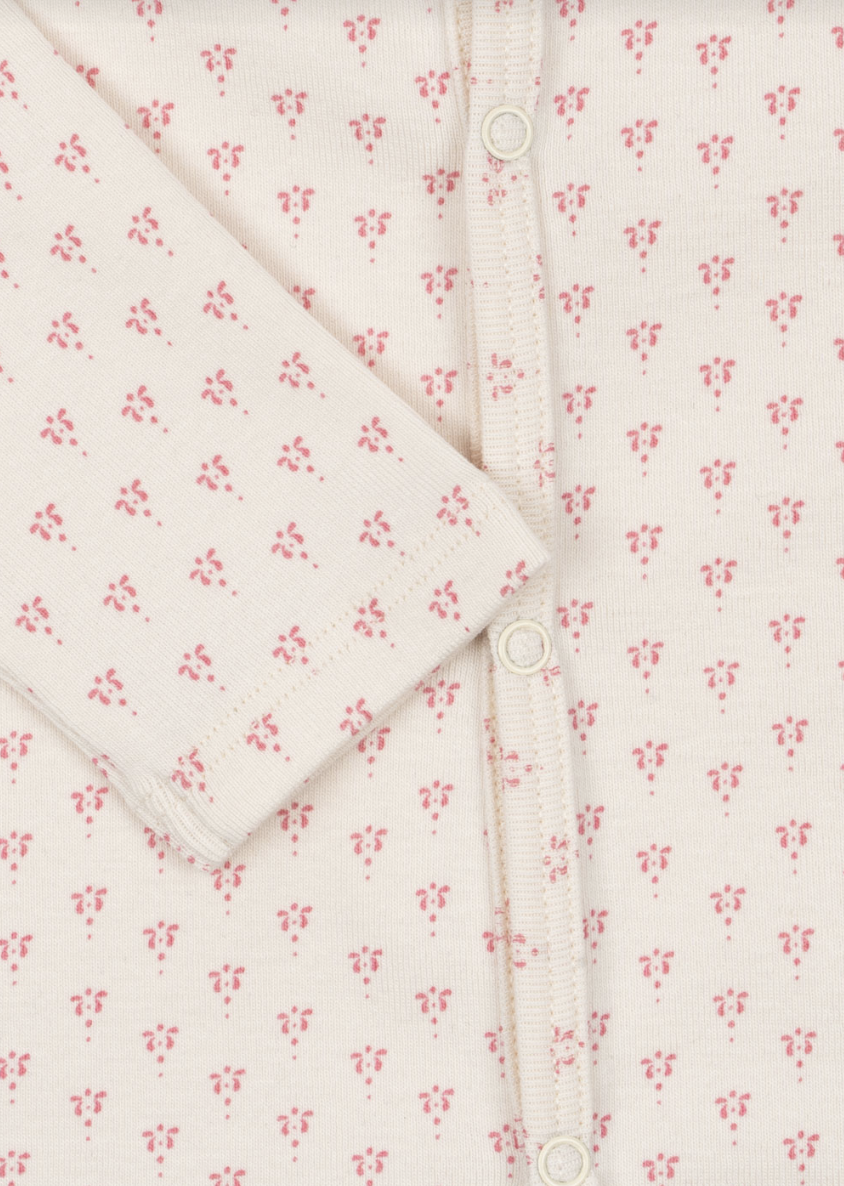 Blød økologisk bomuldsheldragt til nyfødte. Designet med en fuld trykknapåbning foran og ned langs benet, hvilket gør det nemt og bekvemt at skifte din baby. Denne basisbeklædning er lavet i en blanding af økologisk bomuld og modal blandet med elastan for ekstra holdbarhed og stræk. Modal er en blød og åndbar fiber, der føles blid og behagelig til både nat- og dagbrug. Dette produkt indeholder mindst 50% OCS-certificeret bomuld, certificeret af CU1094701.