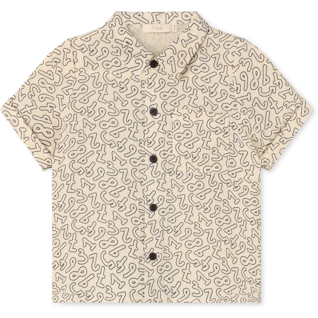 Kortærmet skjorte i blød, vævet muslinkvalitet med et cool talprint. Skjorten har en klassisk krave, opsmøgede manchetter, brystlomme og knapper langs fronten.