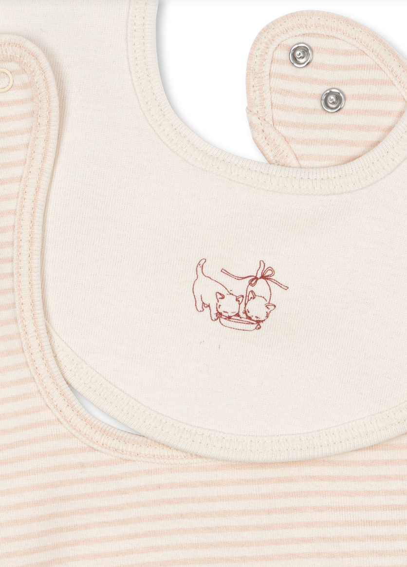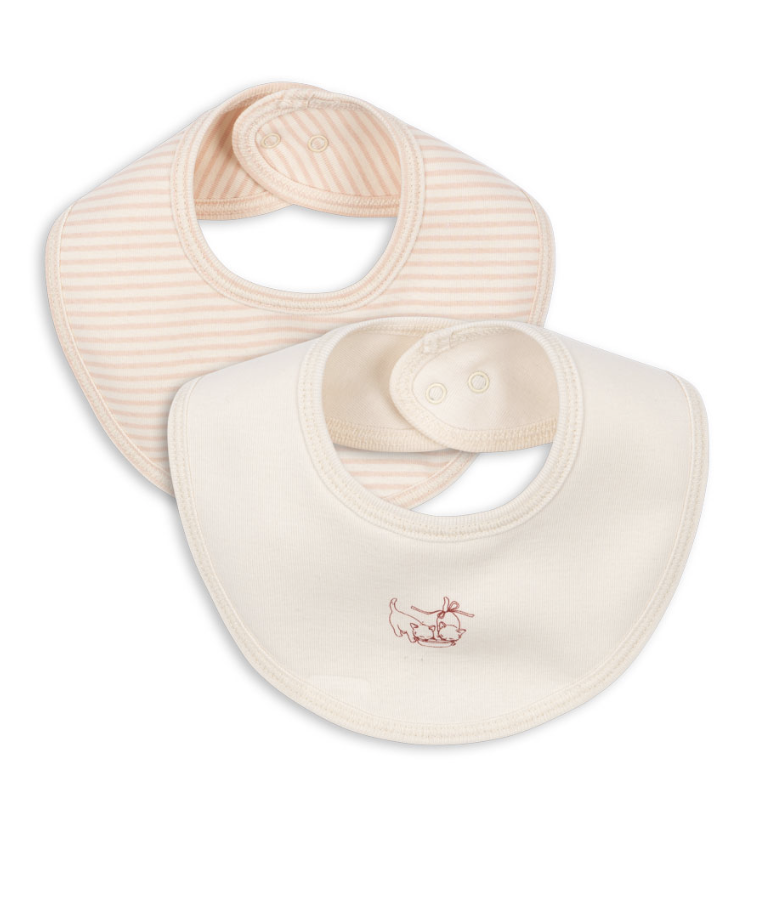 Bløde hagesmækker i økologisk bomuld i en praktisk 2-pak, fordi vi ved, du får brug for det. Klassisk design med justerbar trykknaplukning bagpå. Lavet af 100% økologisk bomuld. Dette produkt indeholder 100% OCS-certificeret bomuld, certificeret af CU1094701.