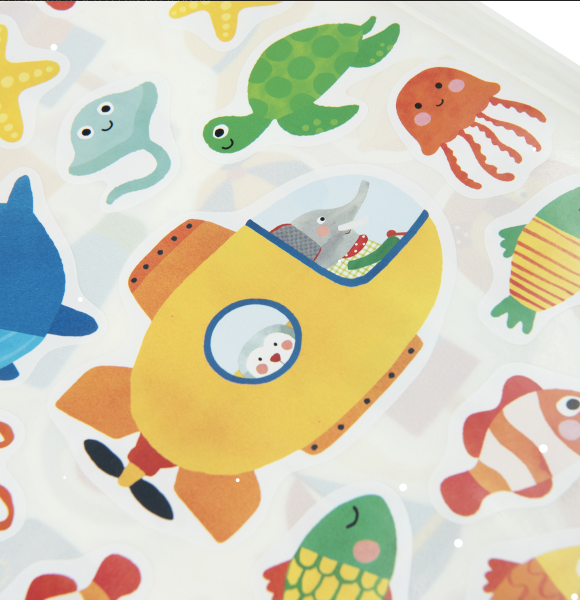 Udforsk Popipops' verden med 300 flytbare klistermærker, sorteret efter tema – køretøjer, dyr, planter og meget mere.