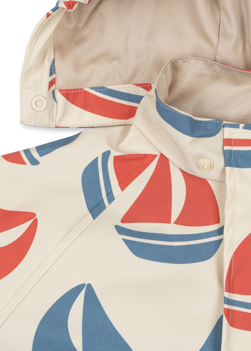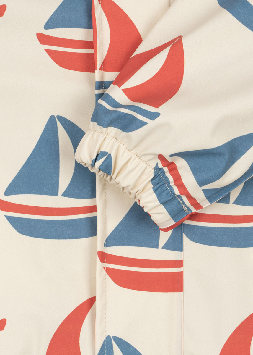 Vind- og vandtæt PU-regnsæt. Har essentielle detaljer som en foret, aftagelig hætte, elastiske manchetter og svejsede sømme for fuldstændig beskyttelse mod elementerne. Bemærk venligst: Op til størrelse 4 år er alle regnbukser designet med seler. For størrelser 5-6 år og opefter har regnbukserne elastisk talje – nemme at tage af og på. Tekniske detaljer: - Vandtæthed: 10.000 mm - Svejsede sømme - Vindtæt Dette produkt er OEKO-TEX® STANDARD 100, klasse 1 certificeret af DTI Tekstil, licensnummer: DTI 2276-361