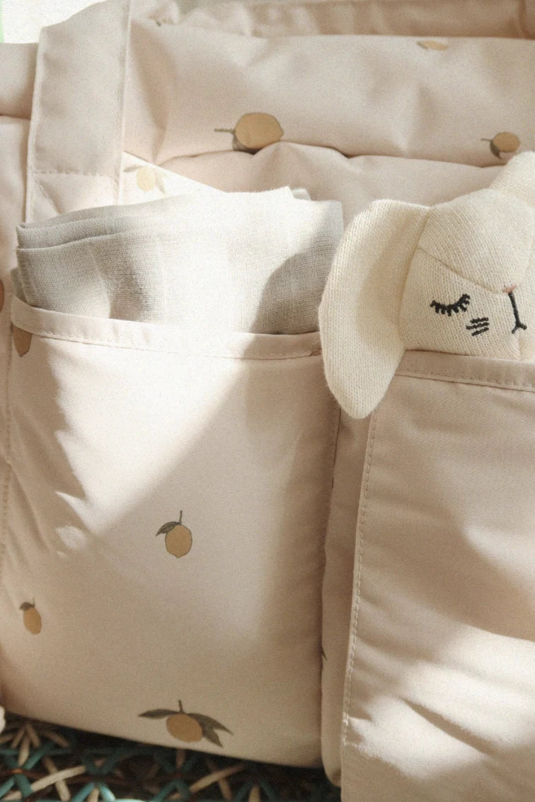Praktisk og funktionel pusletaske til alle dine eventyr på farten. Vores 'All you need'-taske er designet med praktiske inderlommer i forskellige størrelser, der gør det nemt at opbevare og organisere dine fornødenheder. Tasken indeholder en isoleret flaskeholder og to udvendige lommer designet til vådservietter samt en aftagelig, polstret puslemåtte. Tasken har stor opbevaringskapacitet og kan også bruges som weekendtaske. Den har en aftagelig og justerbar skulderrem samt et håndtag. 'All you need'-tasken lukkes med lynlås og har D-ringe på hver side, der nemt fastgøres til barnevognens håndtag eller stel med barnevognskroge. Kvaliteten er både blød og smudsafvisende – et slidstærkt must-have for alle forældre. Bemærk: Barnevognskroge medfølger ikke. Rengøringsanvisning: Vask ved 30 grader C. Vask tasken separat med vrangen udad med lynlåsene lukkede i en vaskepose. Fjern plastikpladen indeni før vask. Maksimal vægt: 10 kg. Dette produkt er OEKO-TEX® STANDARD 100, klasse 1 certificeret af DTI Tekstil, DTI 2276-361.