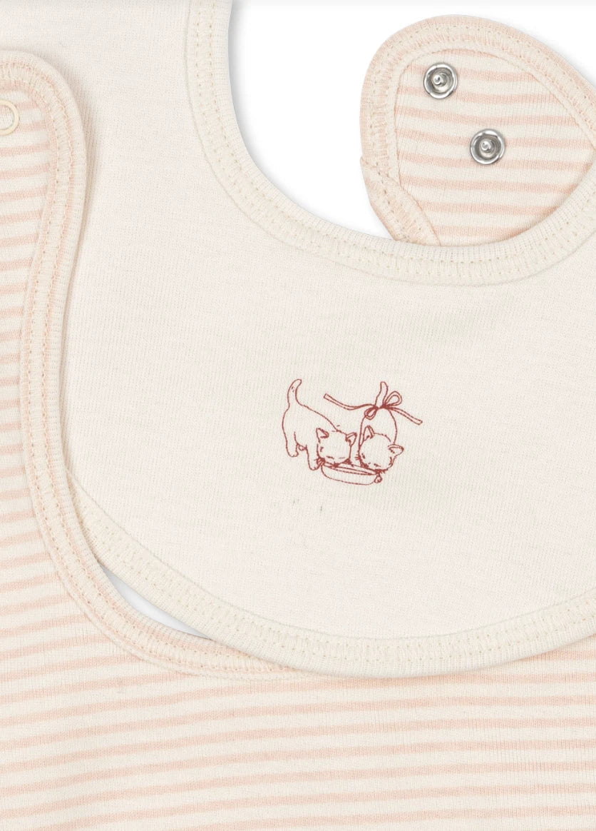 Bløde hagesmækker i økologisk bomuld i en praktisk 2-pak, fordi vi ved, du får brug for det. Klassisk design med justerbar trykknaplukning bagpå. Lavet af 100% økologisk bomuld. Dette produkt indeholder 100% OCS-certificeret bomuld, certificeret af CU1094701.