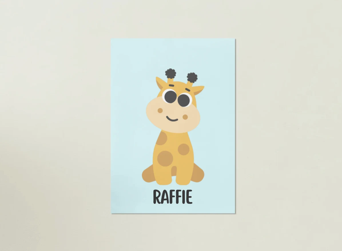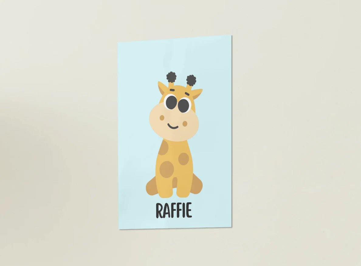 Raffie, den nysgerrige giraf, som elsker at strække sin lange hals for at nå de højeste træer og smage på de sødeste blade