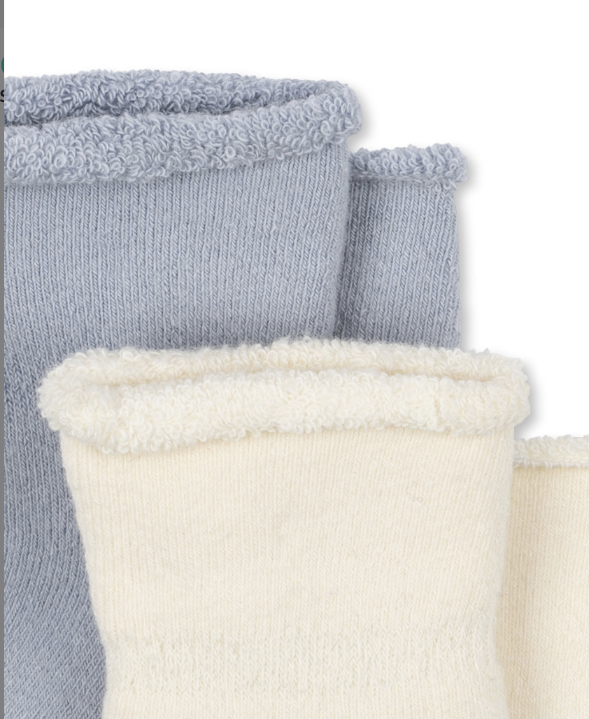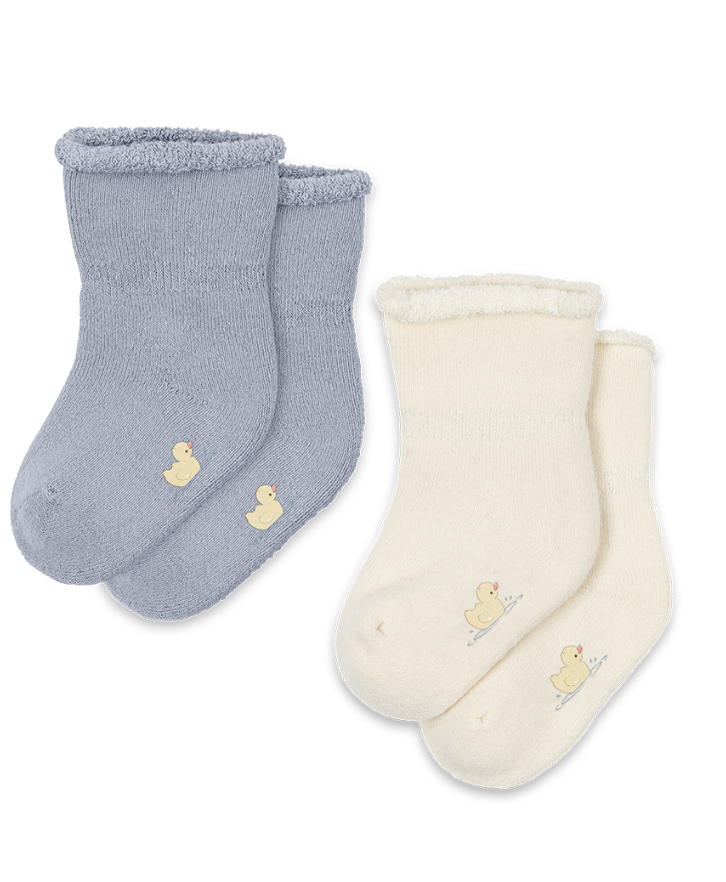 Bløde og varme babysokker lavet i en lidt kraftigere frottébomuldskvalitet. Leveres i en praktisk 2-pak.